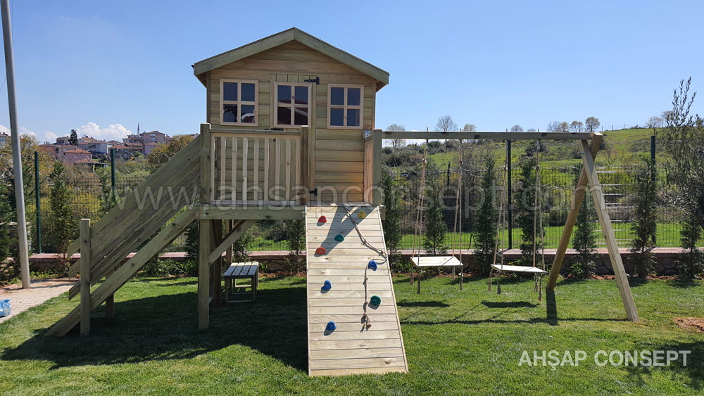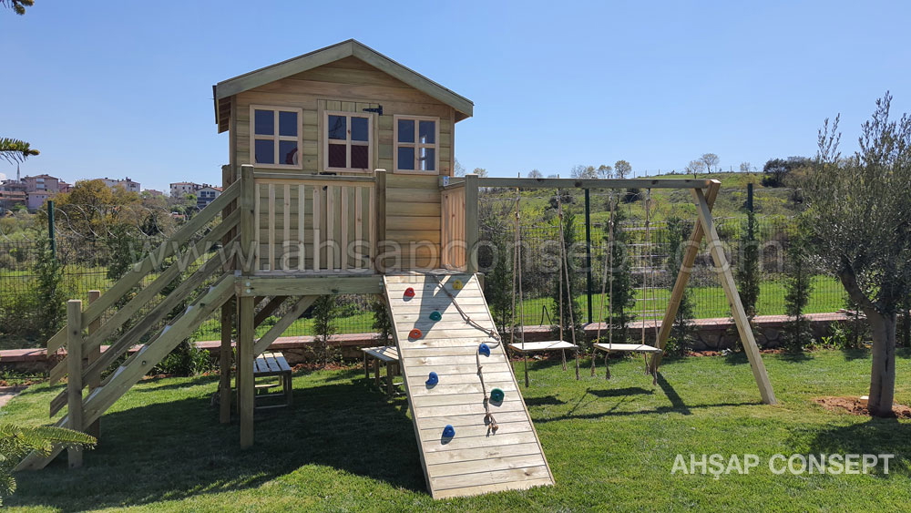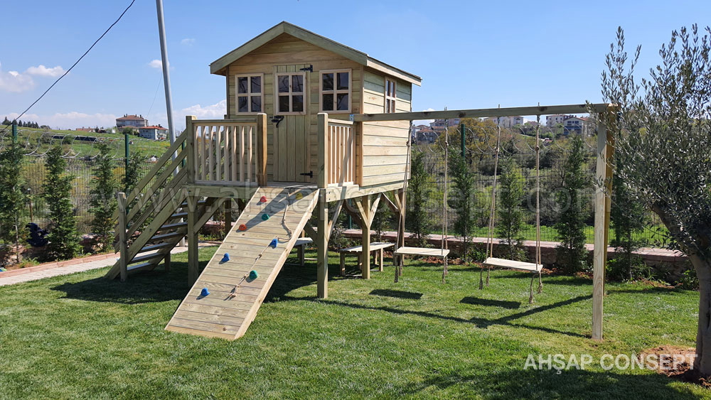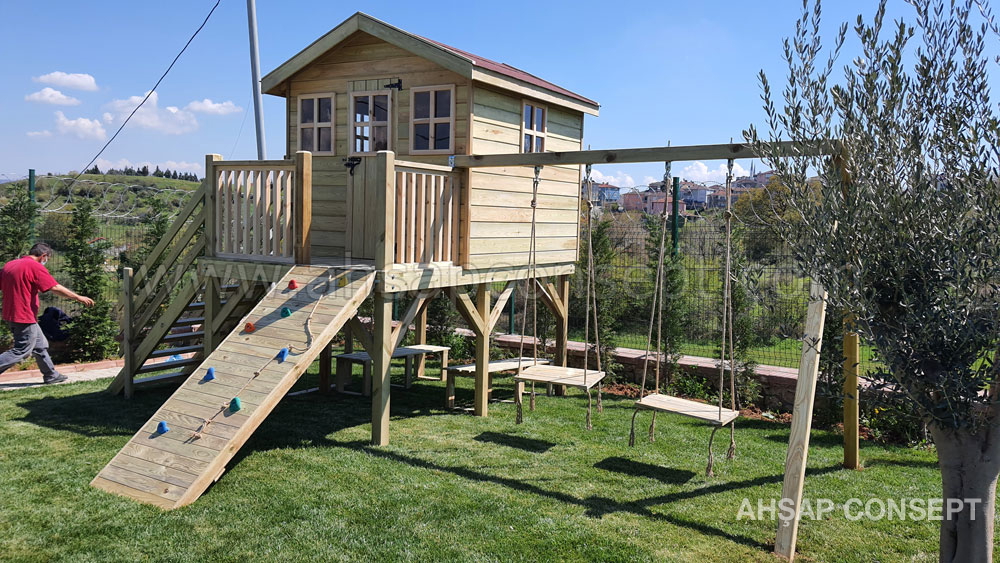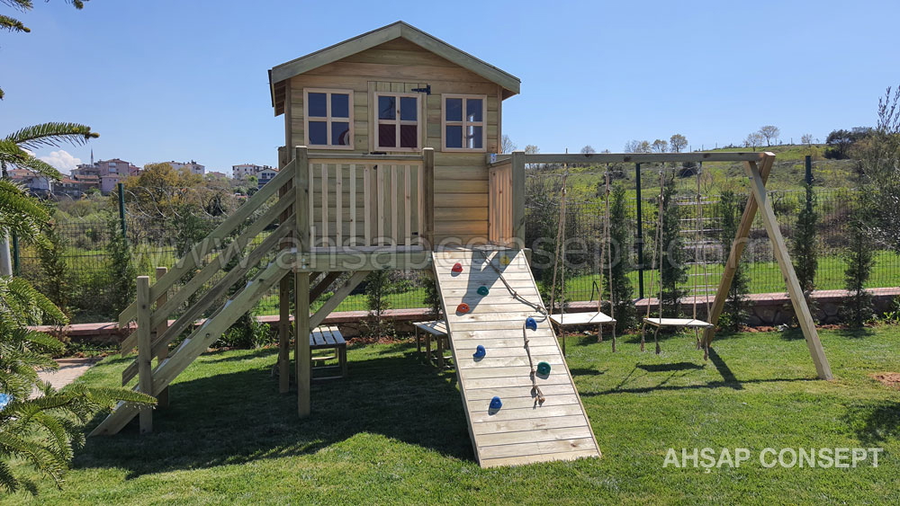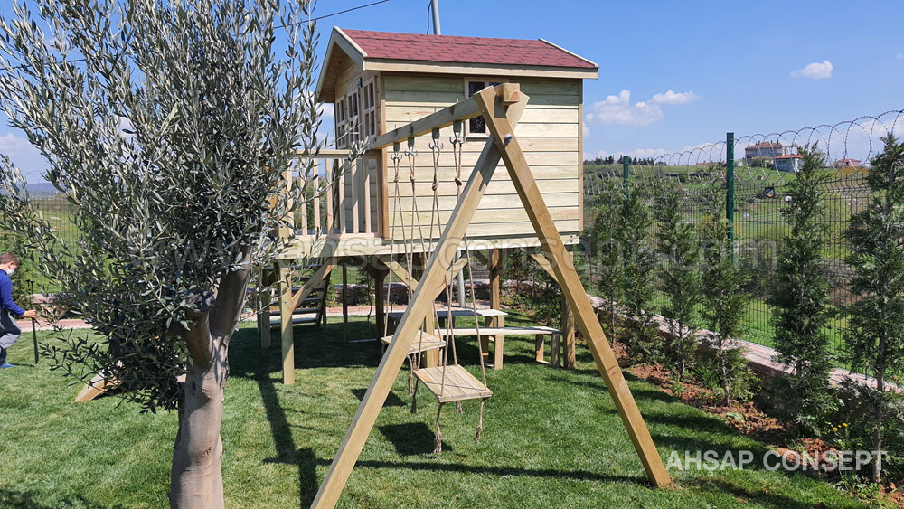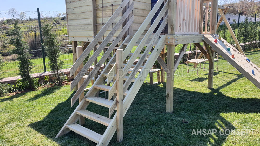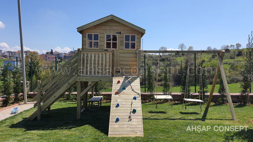 Ön tarafa tırmanma rampası eklenmiştir ve salıncak oturakları ahşap dan yapılmıştır.