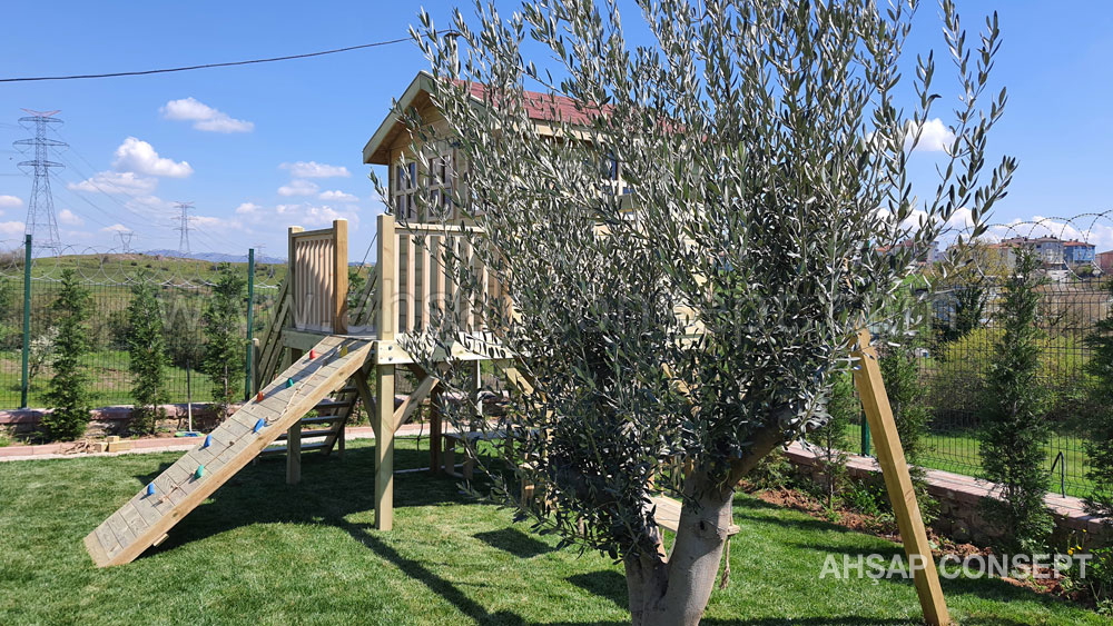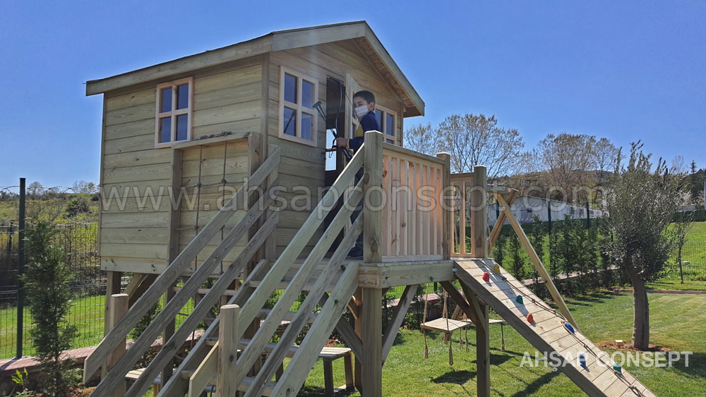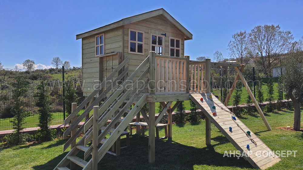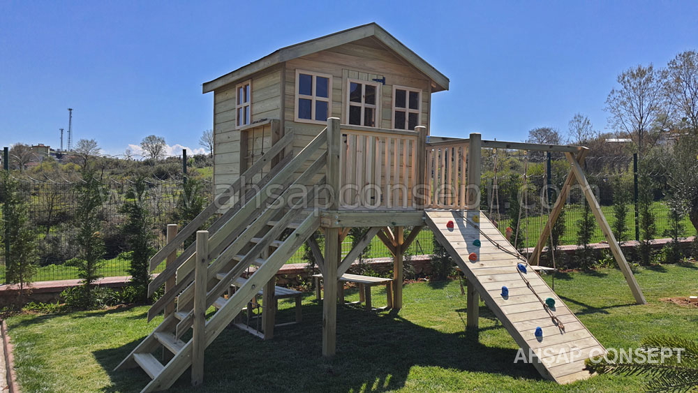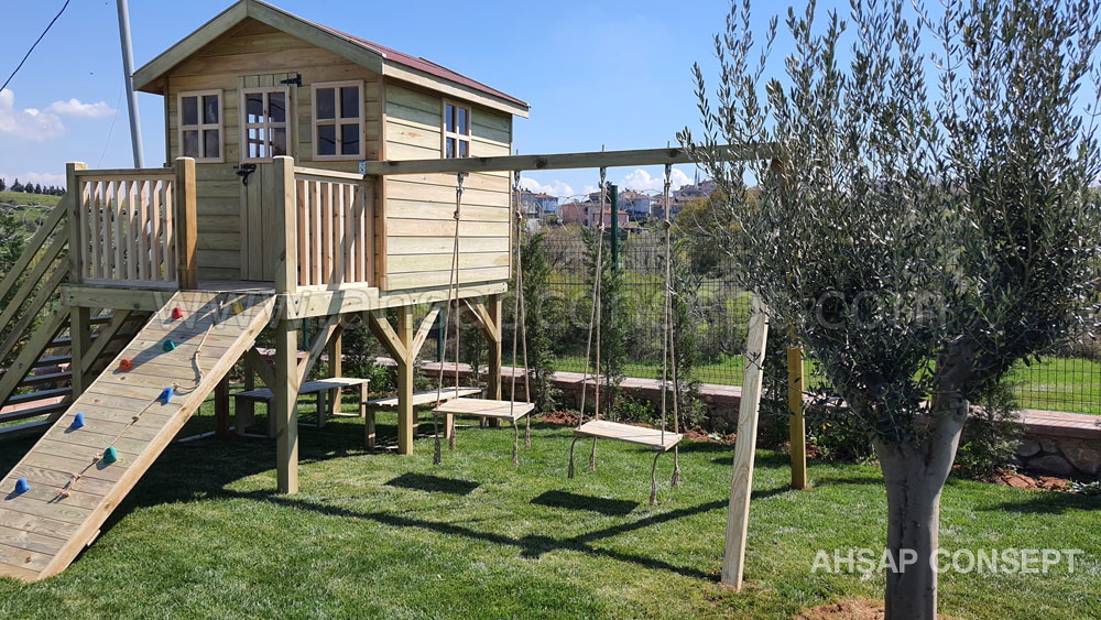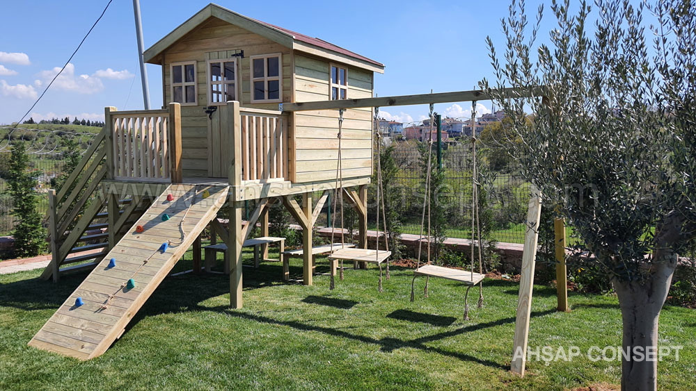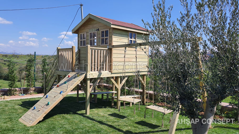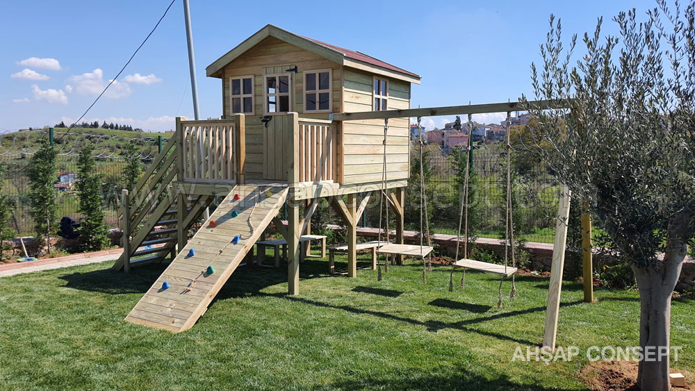 Ön tarafa tırmanma rampası eklenmiştir ve salıncak oturakları ahşap dan yapılmıştır.