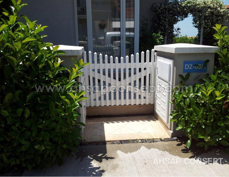 Ahşap kapımızı İstanbul Beylikdüzünde Eston şehir villalarında müşterimiz Begüm hanımın bahçesinin girişine yaptık.