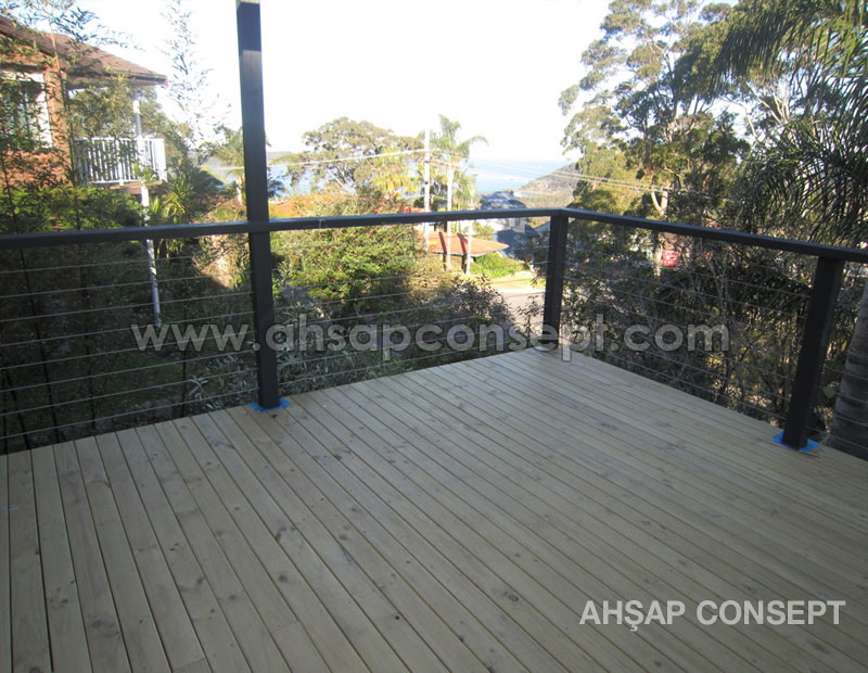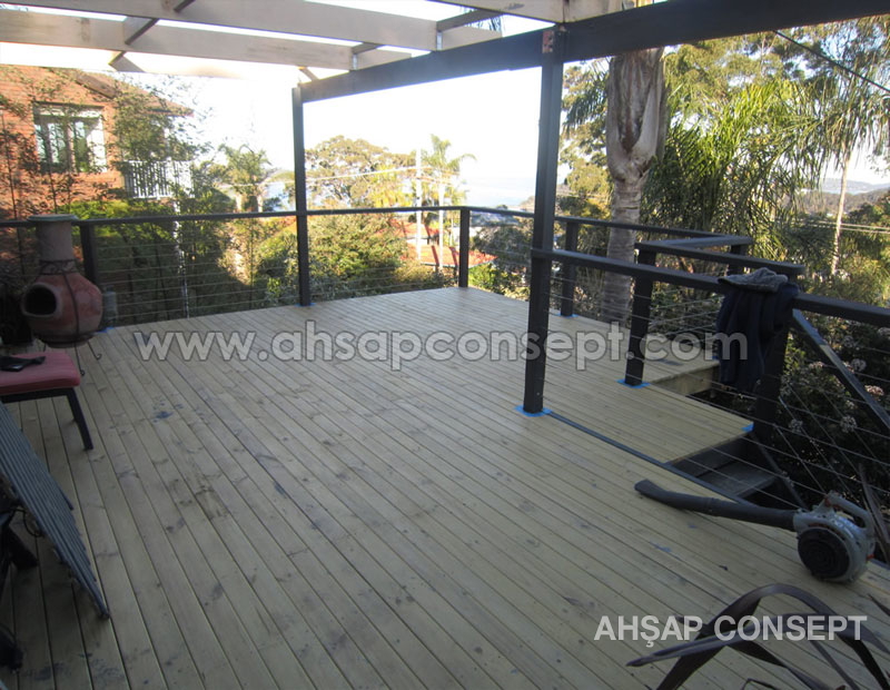 Zeminde alt kısımına 5x10 ızgara yapıldıktan sonra üzerine ahşap deck uygulaması yapıldı.