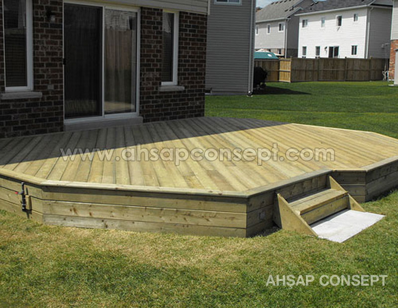 Zeminde alt kısımına 5x15 ızgara yapıldıktan sonra üzerine ahşap deck uygulaması yapıldı.