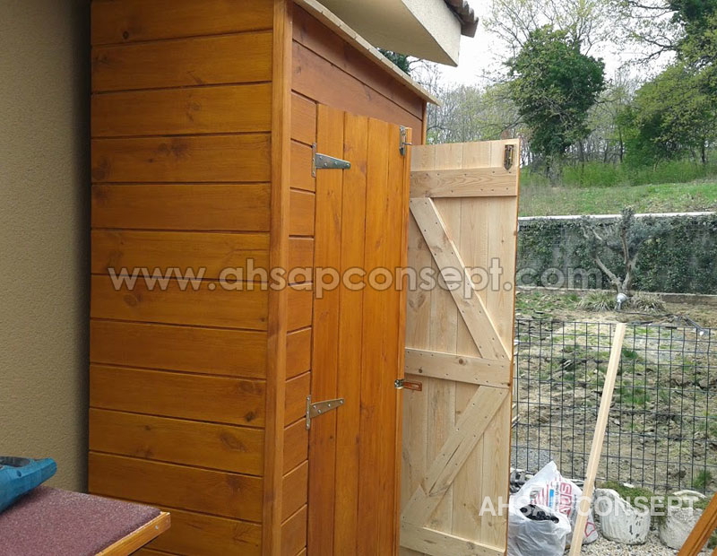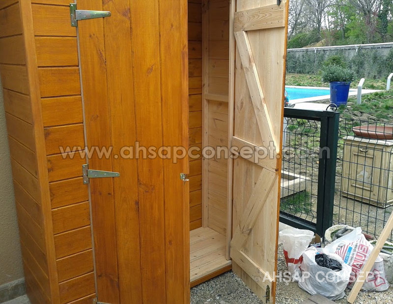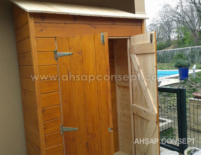 Malzeme kulübesinin girişini önden yaptık bu sayede masa koltuk gibi geniş eşyalar içeriye rahatlıkla girecektir.