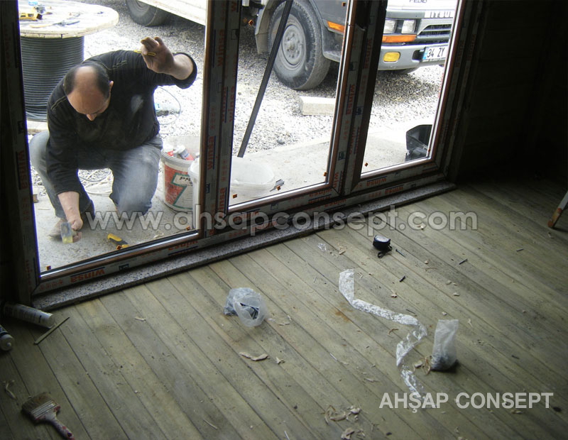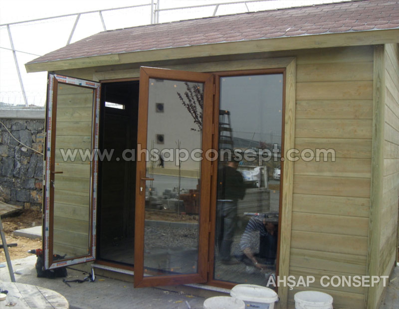 Kulübe nin ön tarafına 200cm lik Plastik doğrama kapı yaptık bu sayede geniş eşyalar içeriye rahatlıkla girecektir.