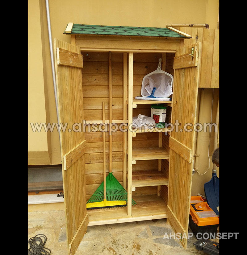 Ahşap malzeme dolabımızı Zekeriyaköyde değerli müşterimiz Salih beyin bahçesine yapıldı.