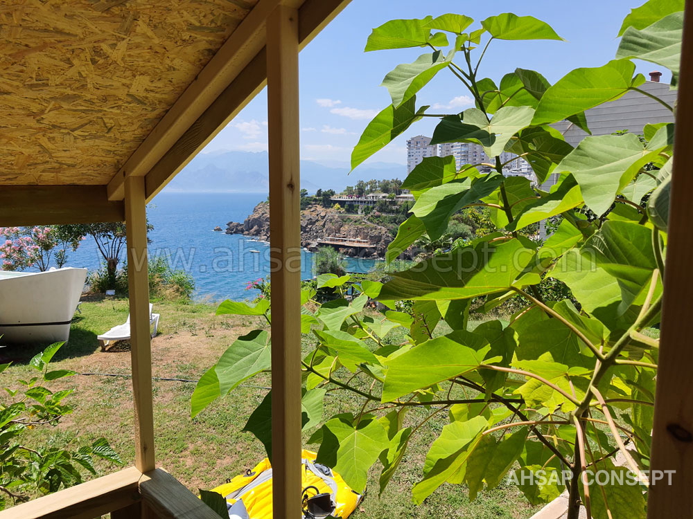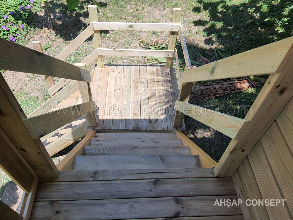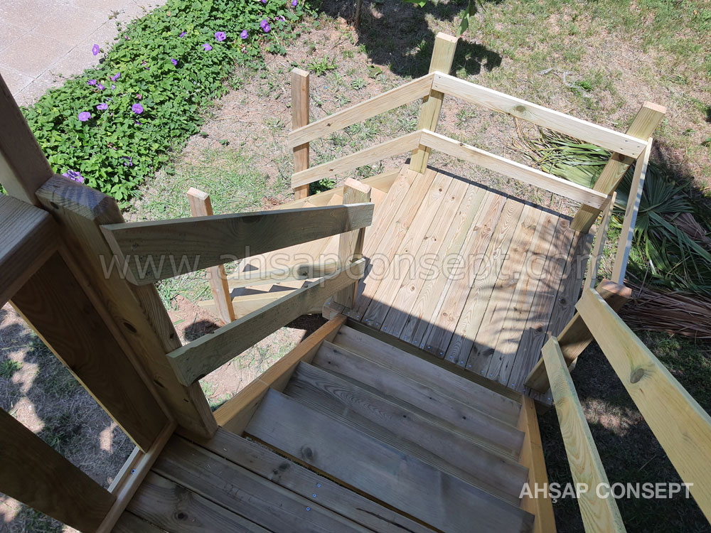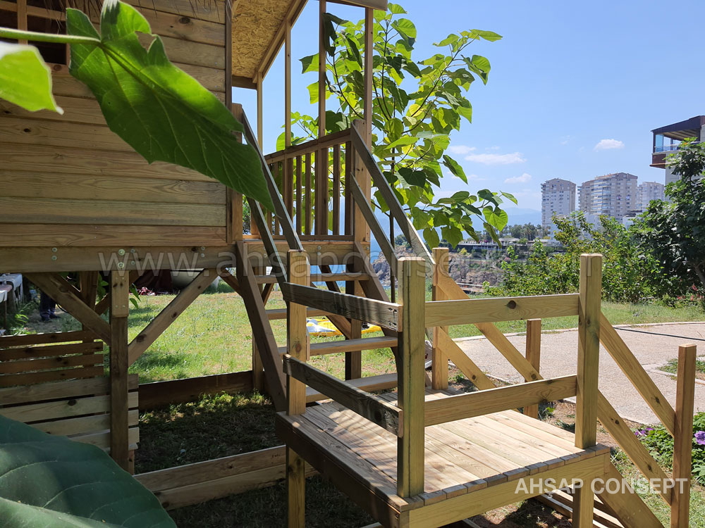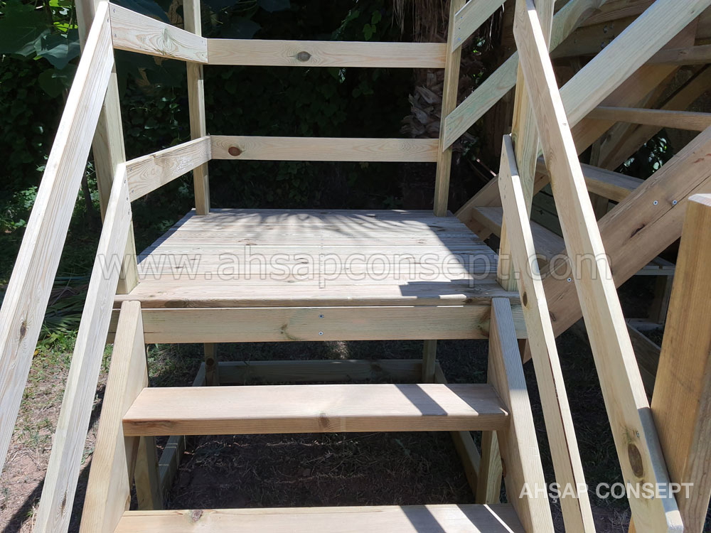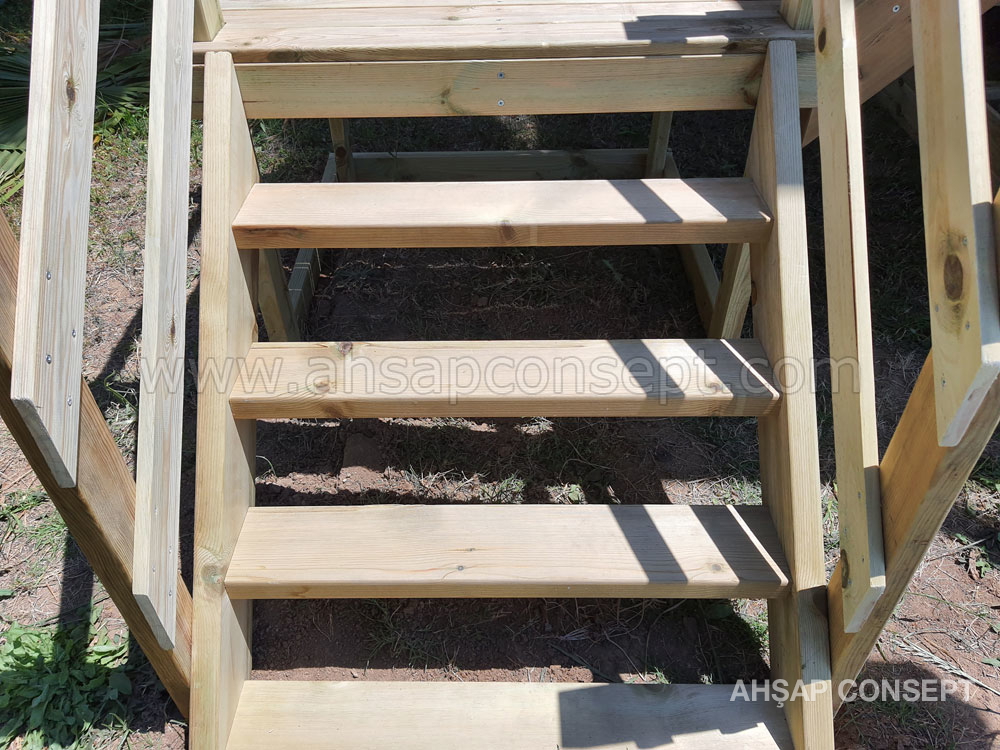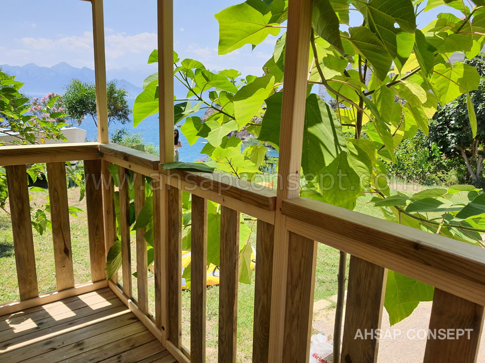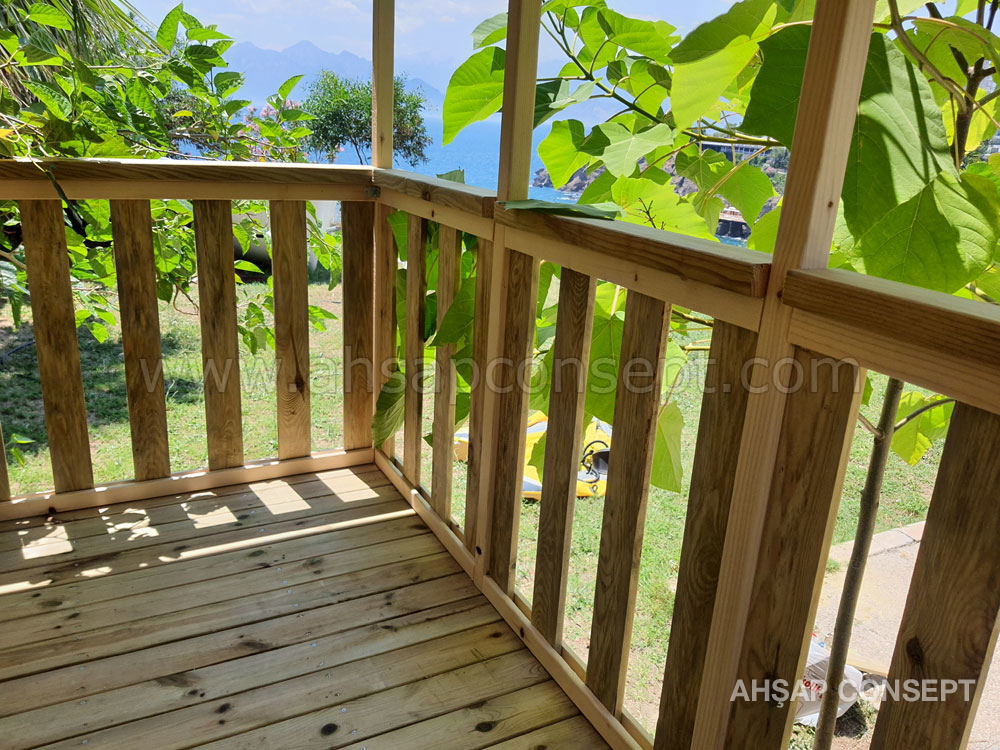 - 5x10 ve 5x15 ahşap zemin iskeletle yapılmıştır, üzerine ahşap deck yapılmıştır.