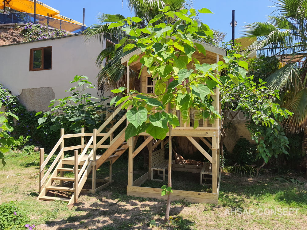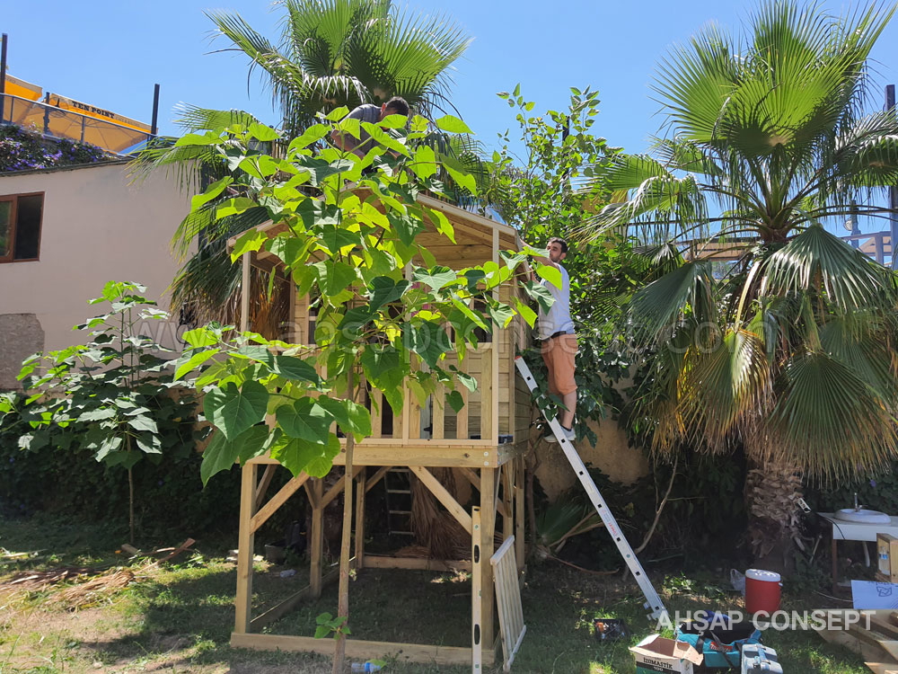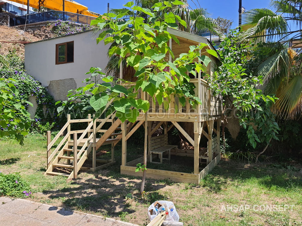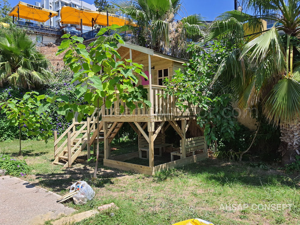 Oyun evimizi Antalya Lara da müşterimizin bahçesine yaptık.