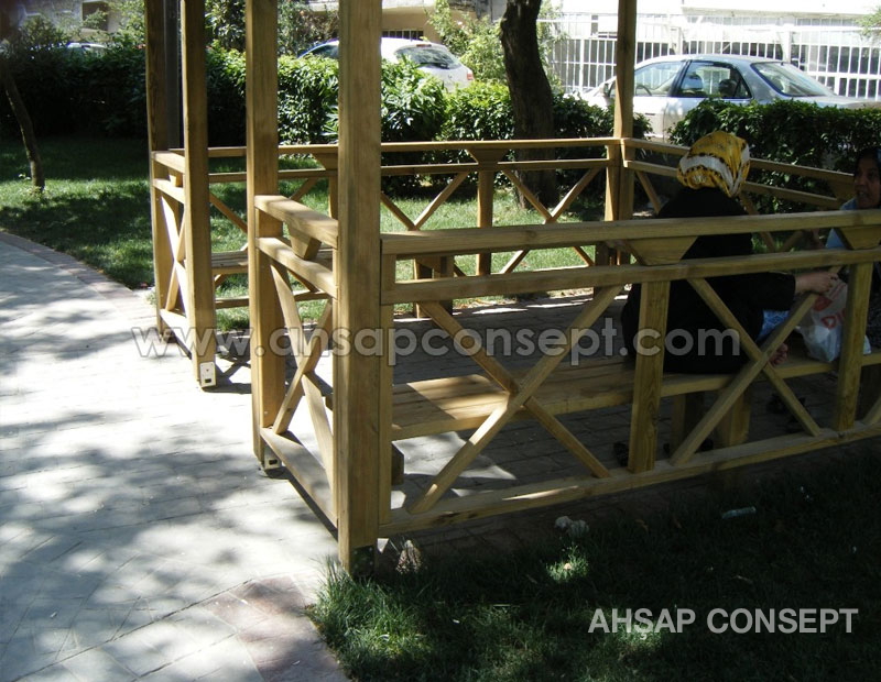 Ürünün imalatında yine hafif yeşil emprenyeli ithal çam kullandık, bu ürünümüzün ölçüleri standart ölçü olan 3x3 ölçüsündedir.