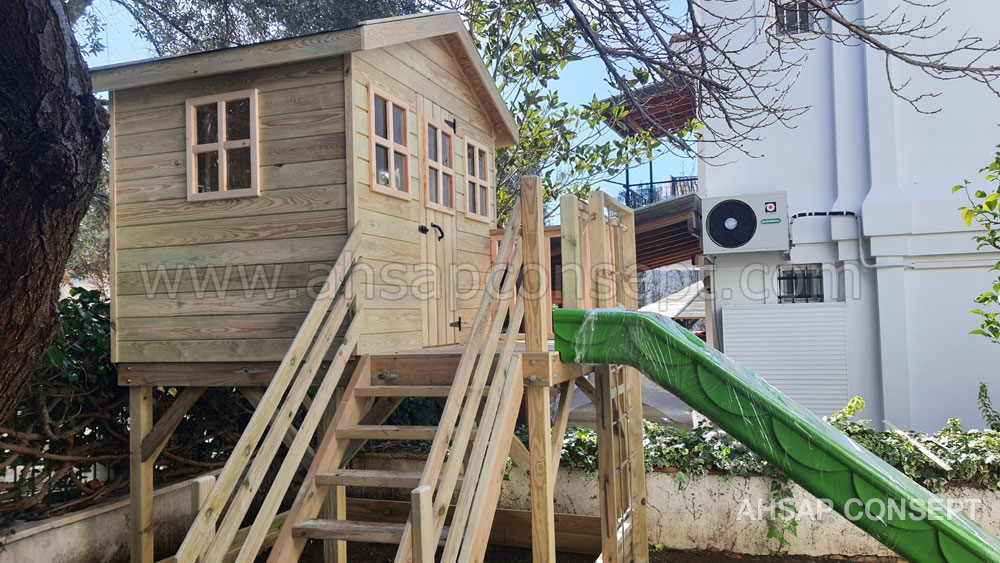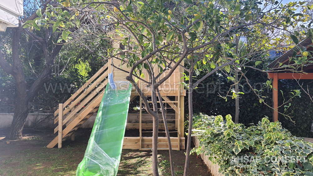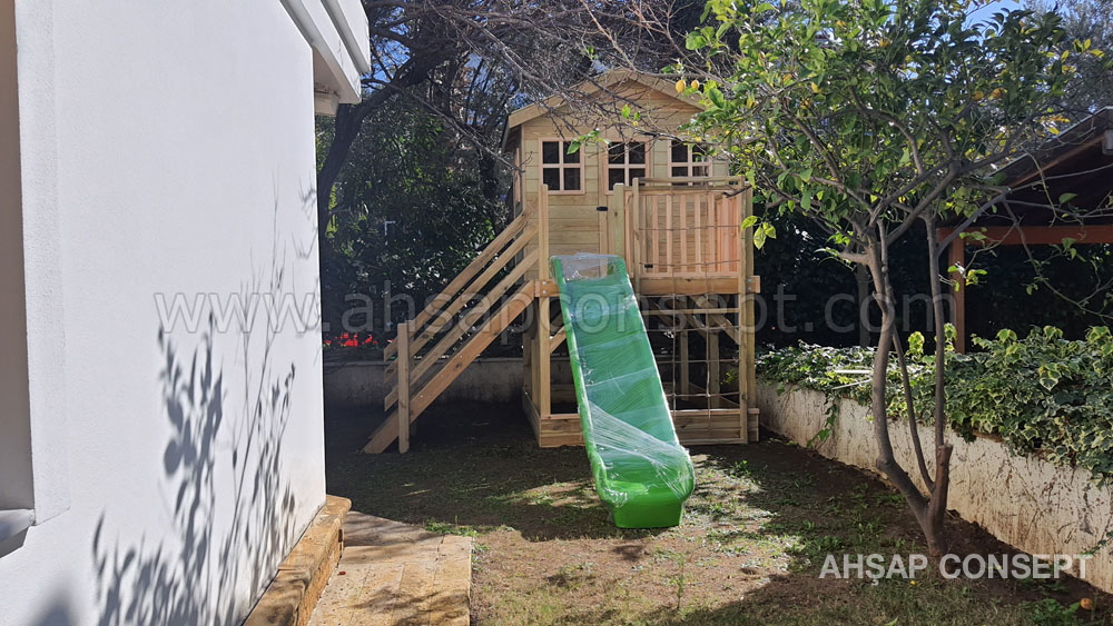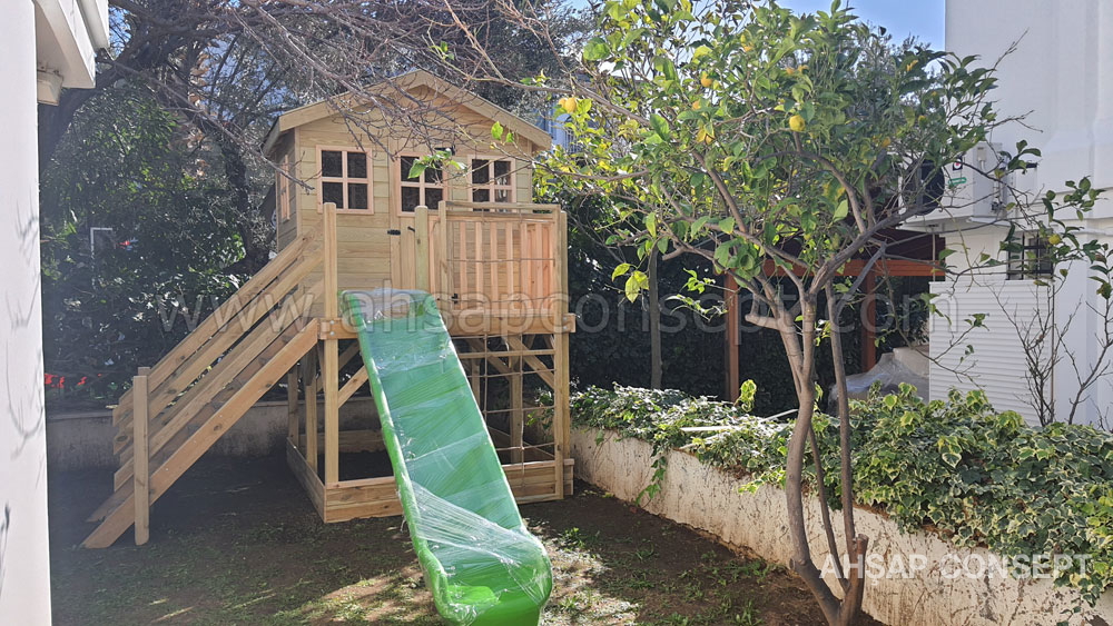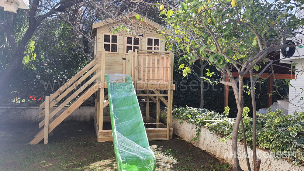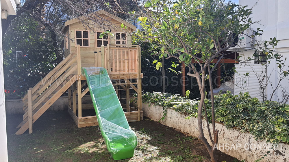 Oyun evimizi İzmir Foçada müşterimiz Hande hanımın bahçesine yaptık.
