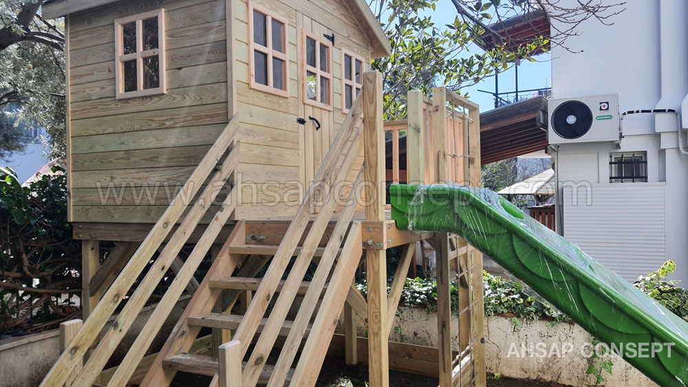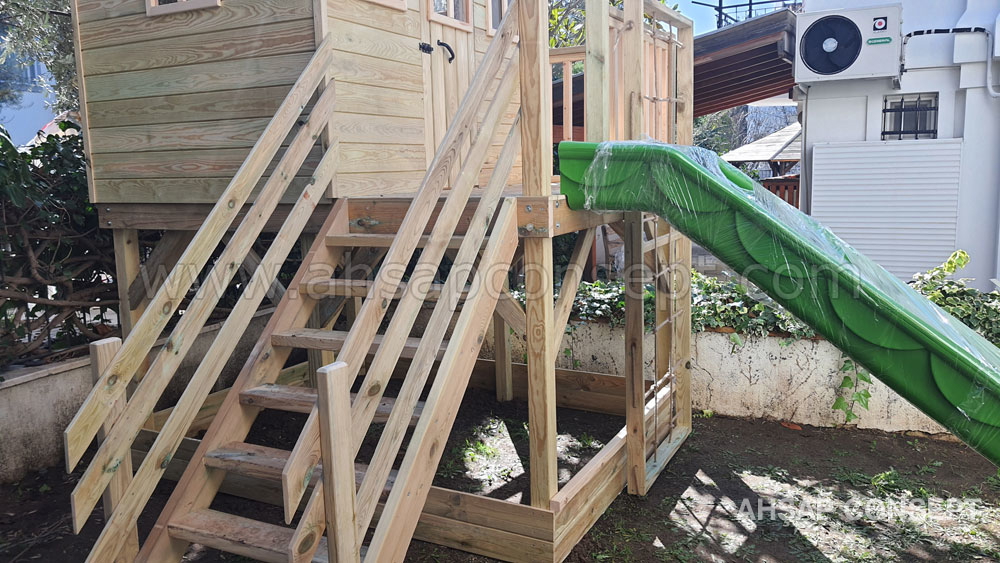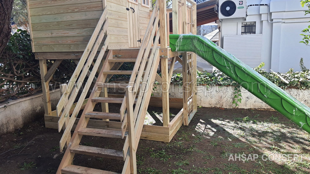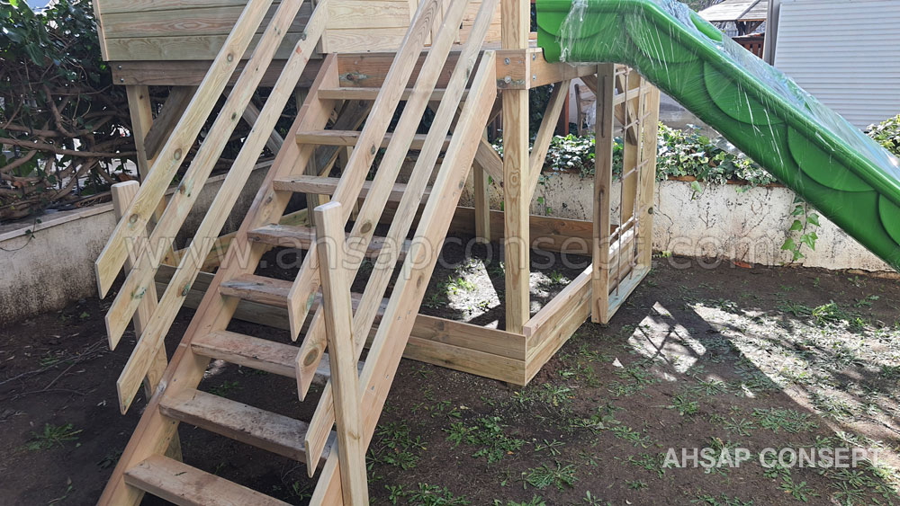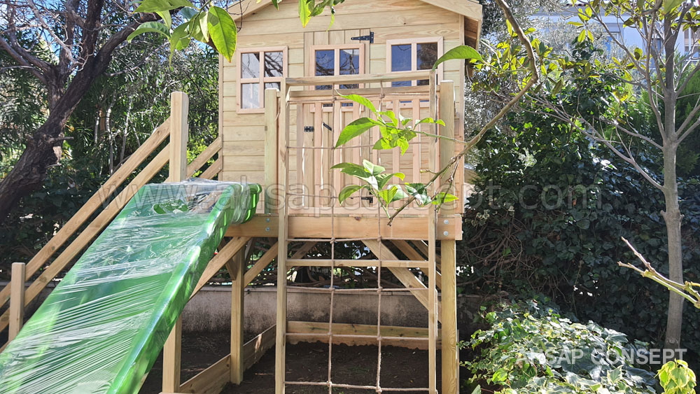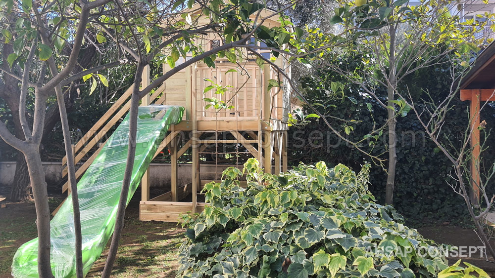 Oyun evimizi İzmir Foçada müşterimiz Hande hanımın bahçesine yaptık.