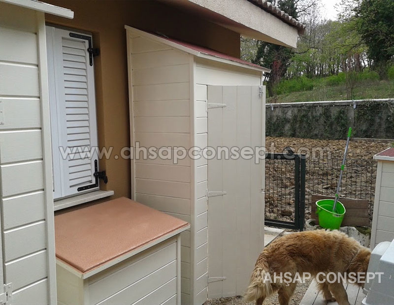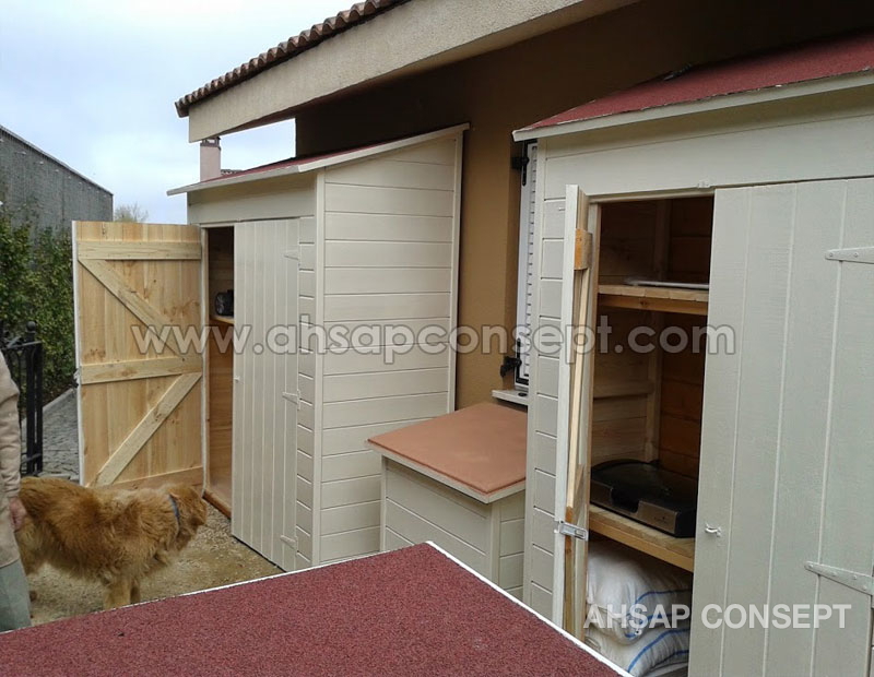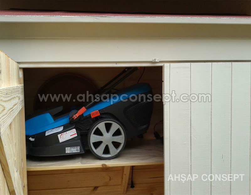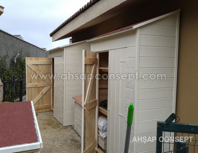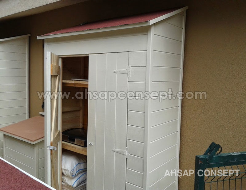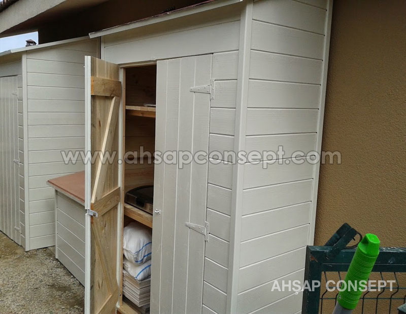 Malzeme kulübesinin girişini önden yaptık bu sayede masa koltuk gibi geniş eşyalar içeriye rahatlıkla girecektir.